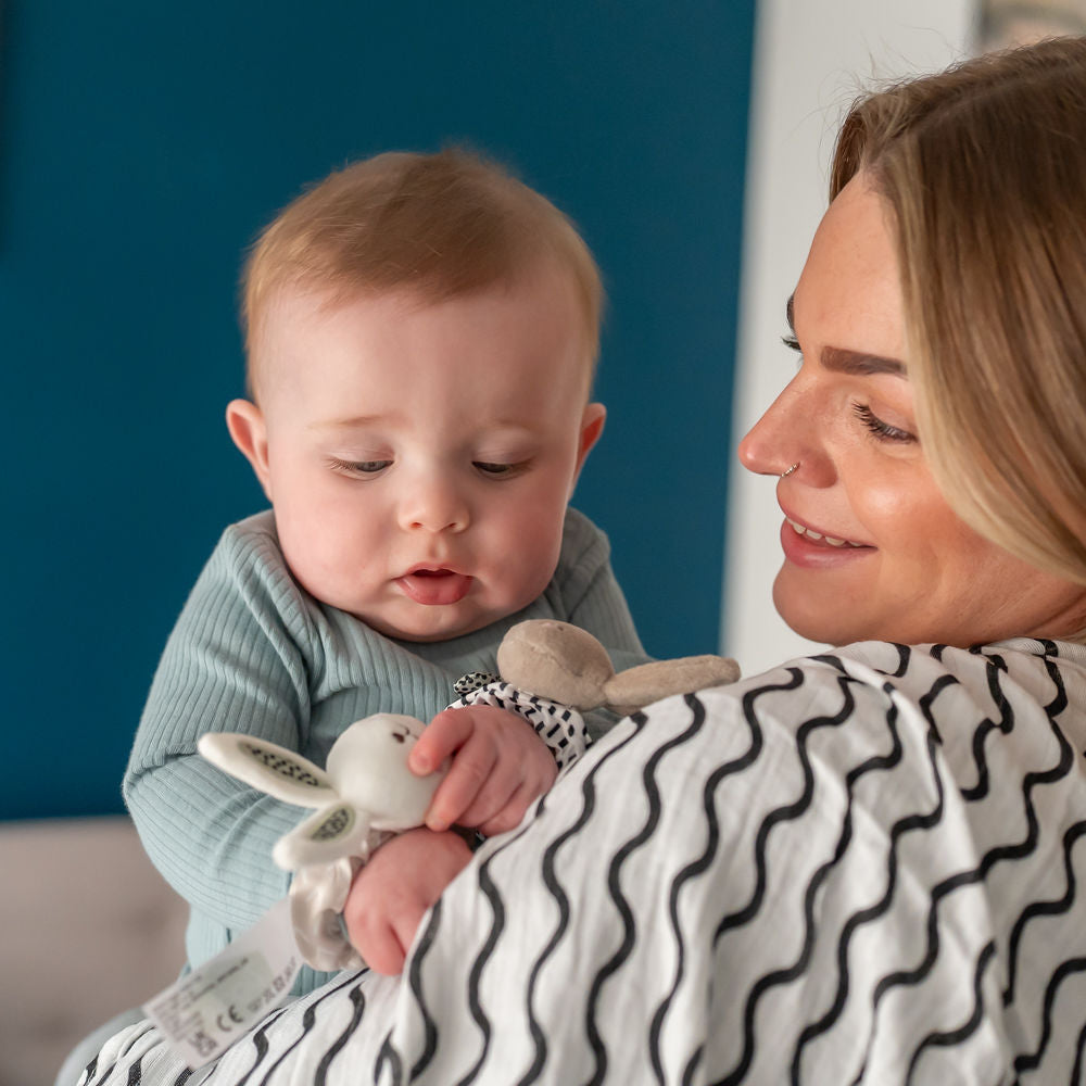 - Our striking Black and White muslin is an essential for every parents' changing bag!