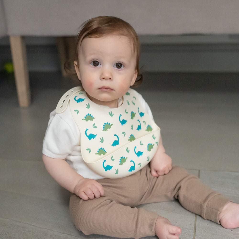 - Protect your little one's clothes with our gorgeous Dinosaur design silicone bib.