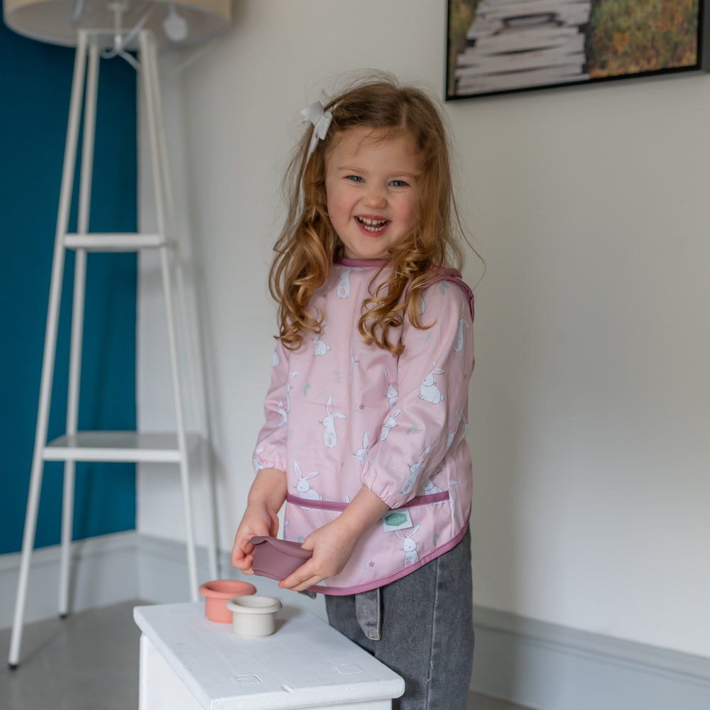 - Cover your little one's clothes with our gorgeous Bunnies design long sleeve bib.