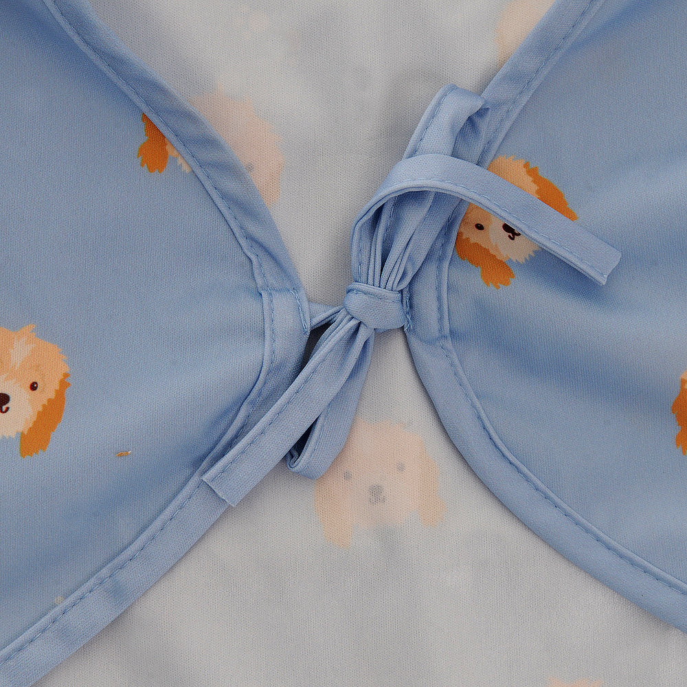 - Easy to put on with its side neck popper fastening and adjustable tie closure at the back.