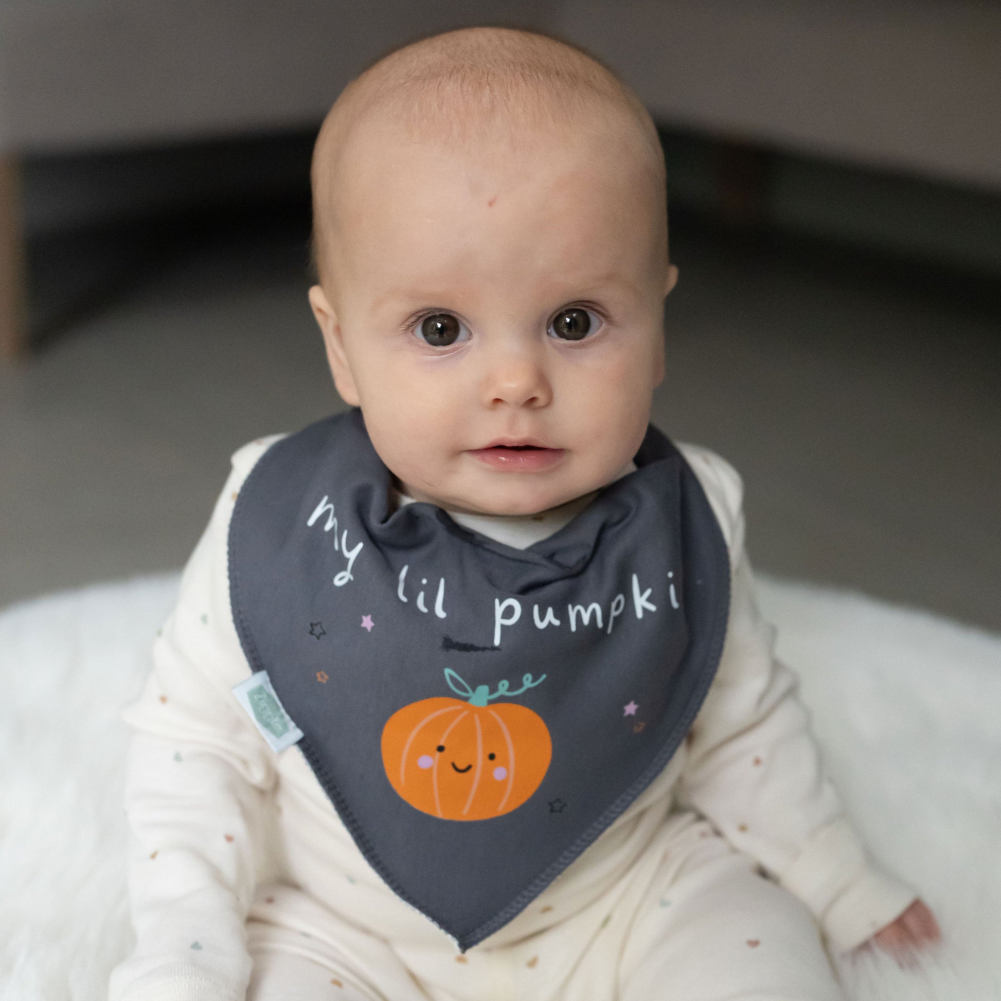 - Our cute my L'il pumpkin on grey dribble bib is perfect for little dribblers and teething tots!